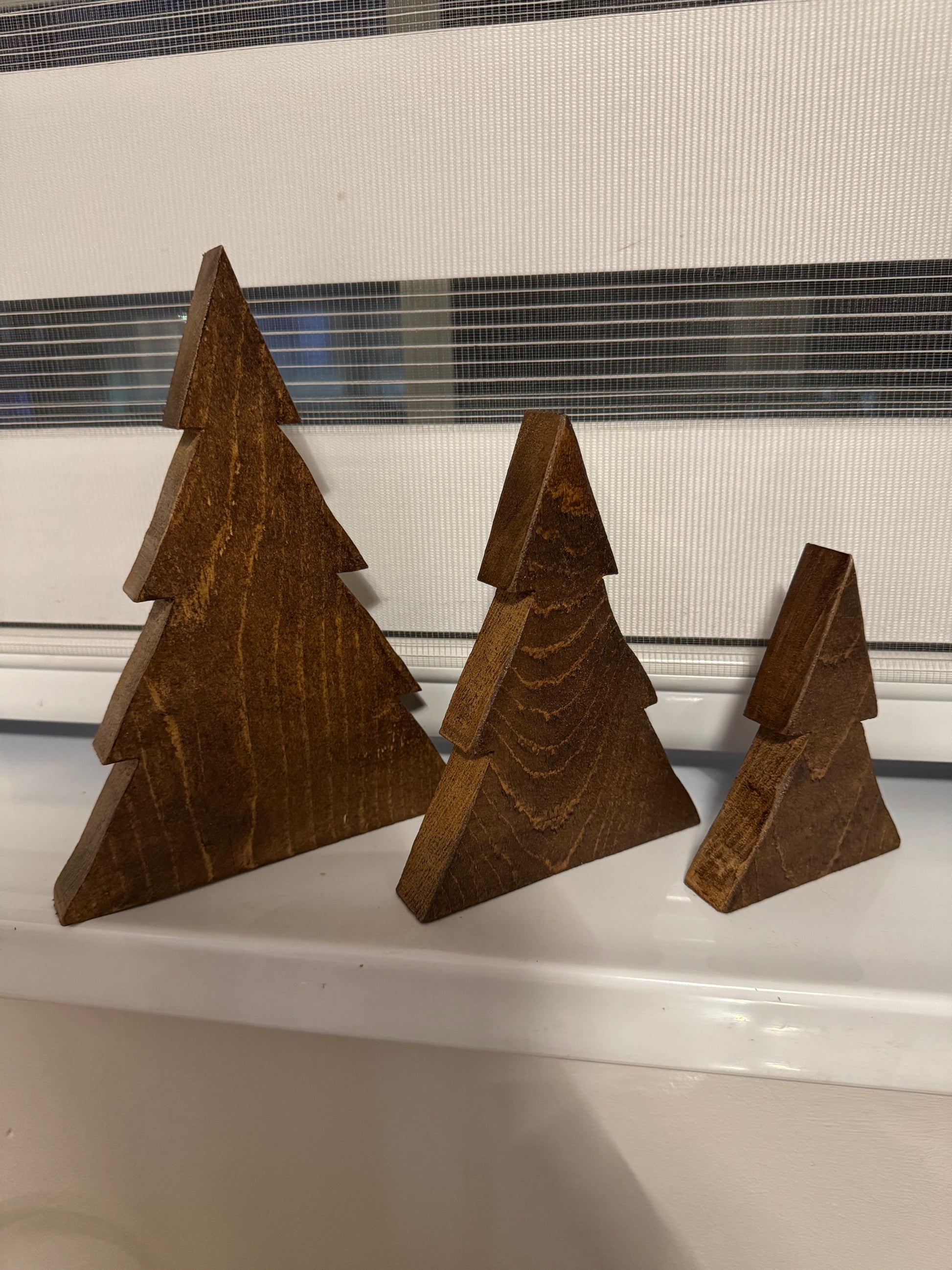 Bring a touch of natural warmth to your festive decor with this set of three handcrafted wooden Christmas trees. Made from sustainably sourced wood and finished with a smooth wax polish, these simple yet elegant trees add rustic charm to any home, shelf, or mantelpiece.